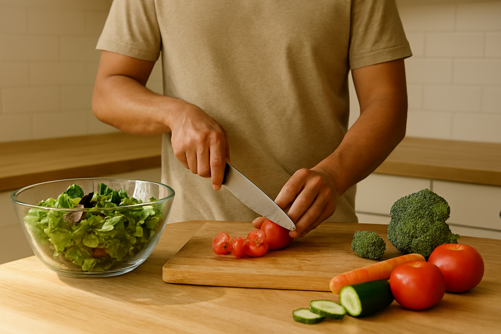 - Afternoon: balanced home-cooked meal