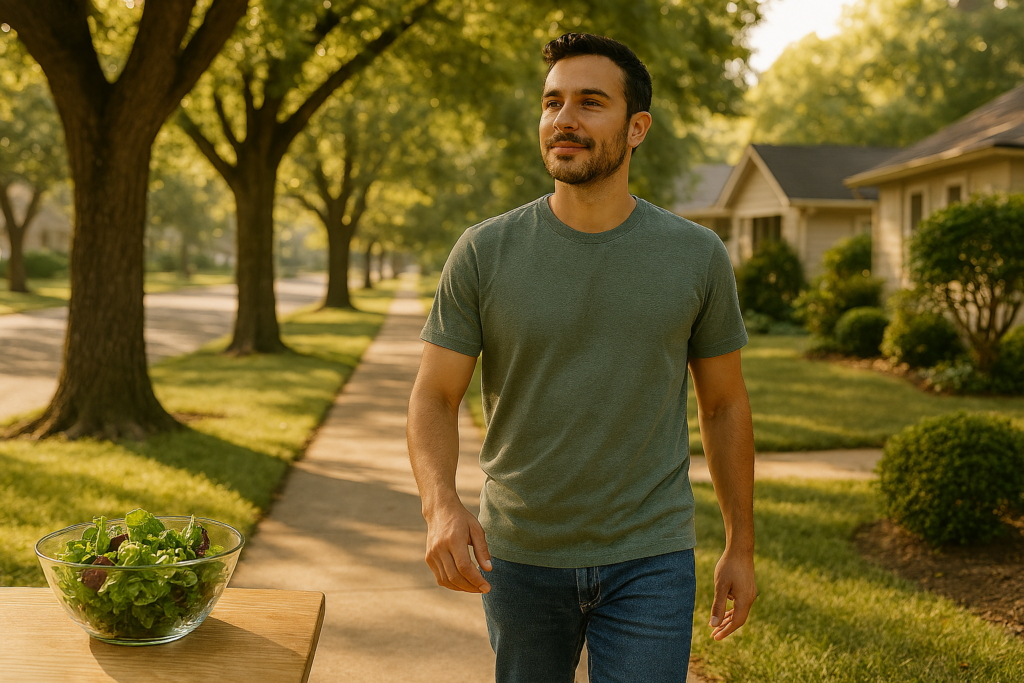 - Evening: short walk + hydration